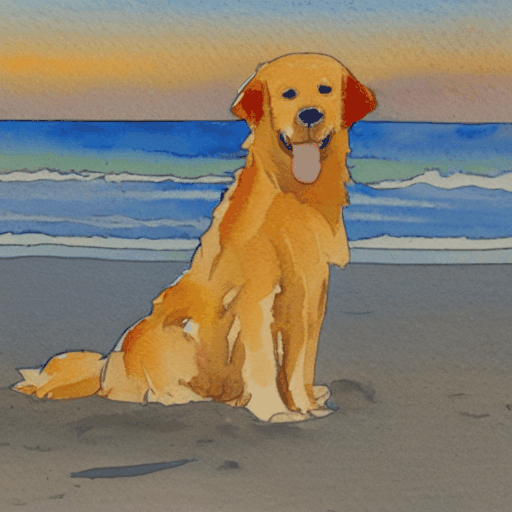 prompt_1 = "A watercolor painting of a Golden Retriever at the beach"