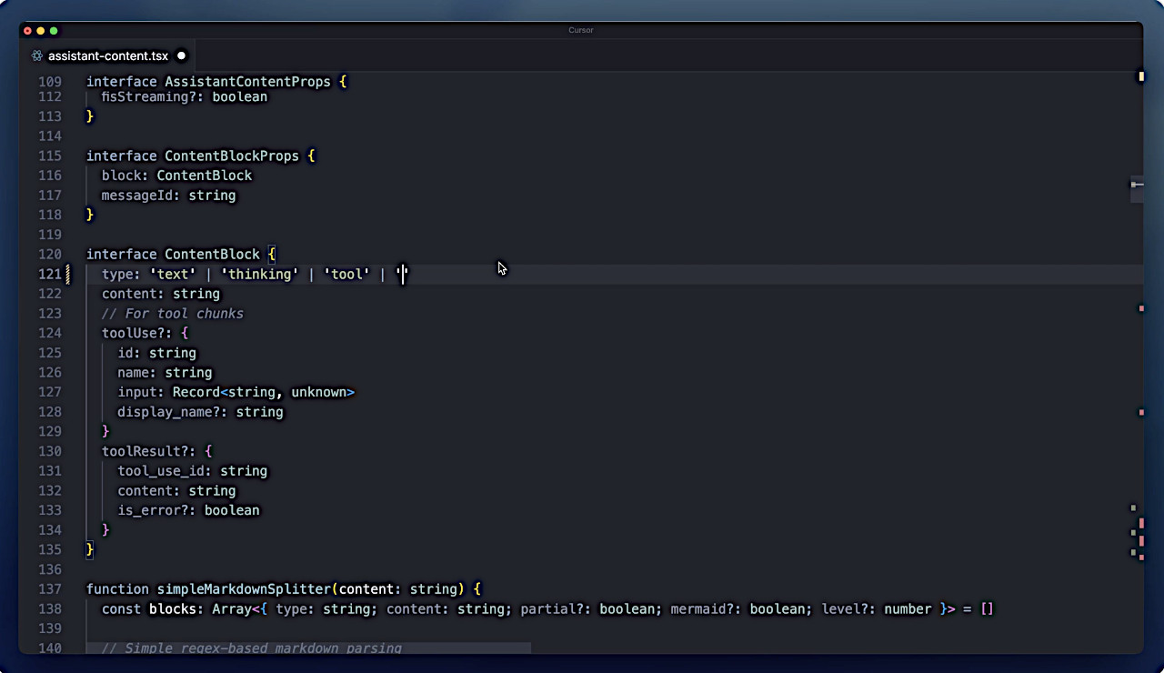 Tab は自動補完に特化した Cursor モデルです。使い込めば、提案を受け入れたり (Tab) 拒否する (Escape) ことで意図を注入するにつれて、モデルはより良くなります。Tab の使用で、以下が可能になります :