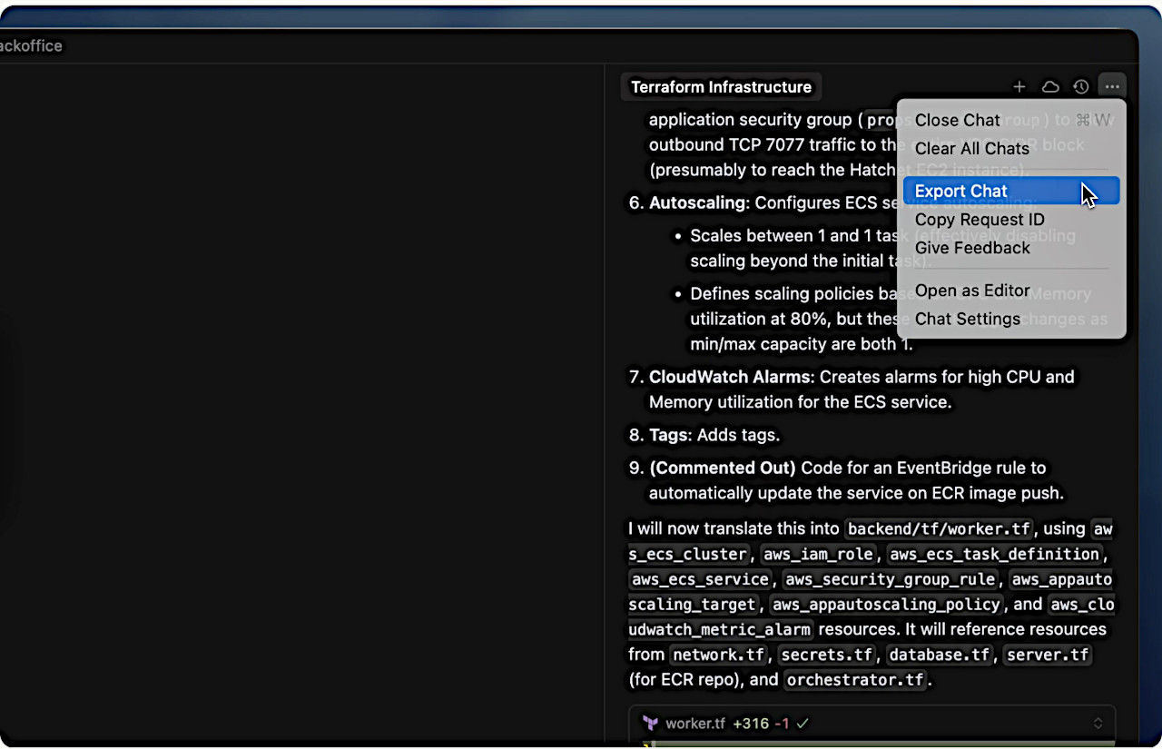 Cursor 再入門: コア: エージェント – チャット: エクスポート