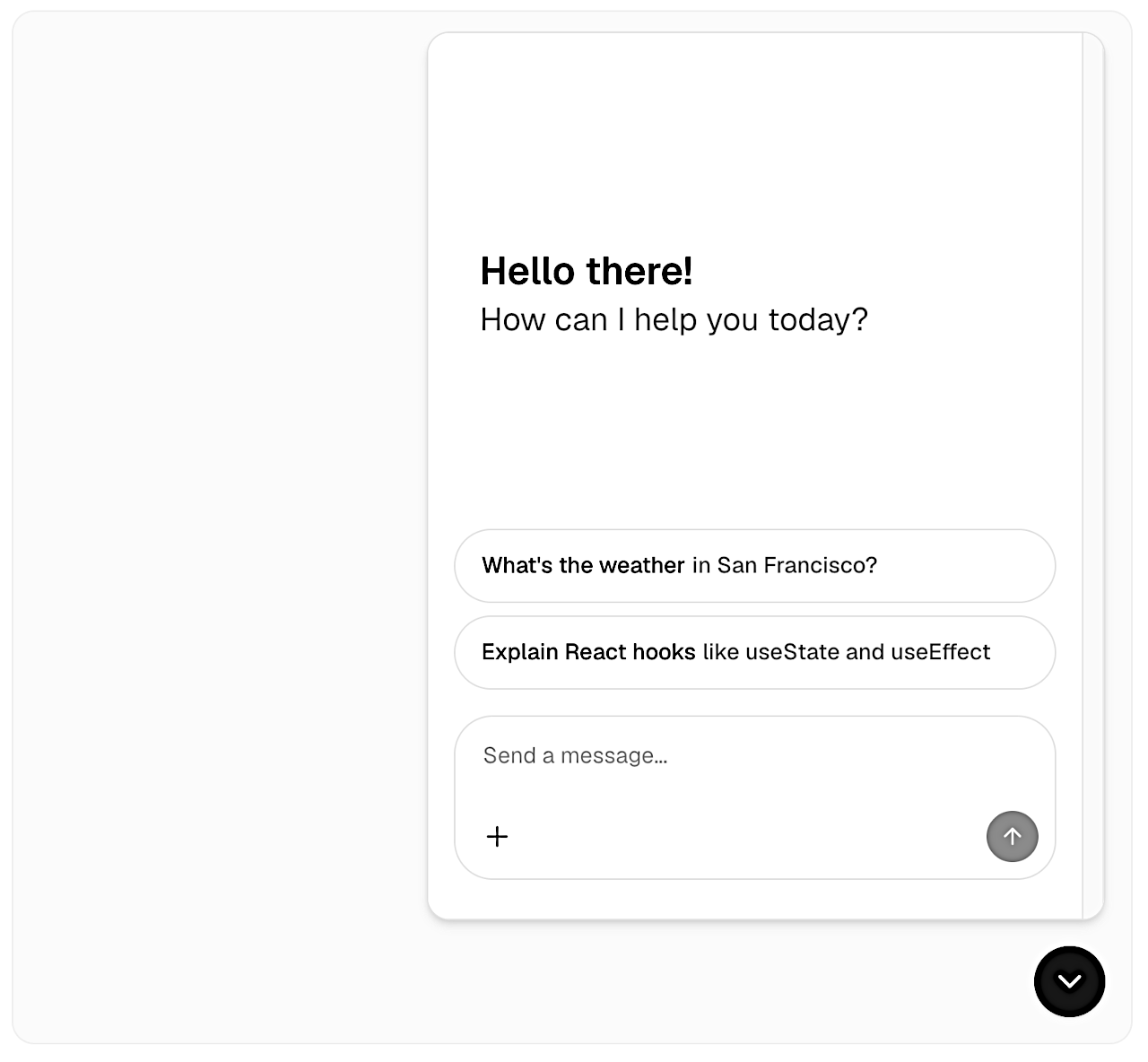 ℹ️ ランタイム・セットアップ: プリミティブはランタイム・コンテキストを必要とします。UI をランタイム (例えば useLocalRuntime(…)) を持つ AssistantRuntimeProvider でラップします。See Pick a Runtime.
